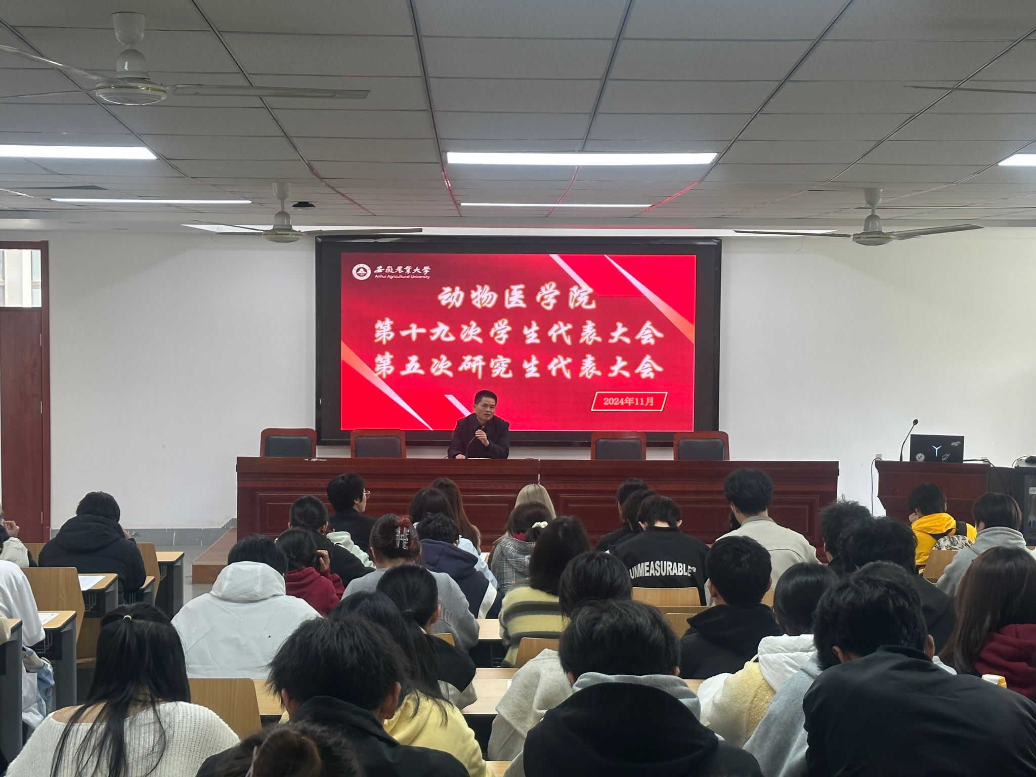 本网讯 根据校团委《关于召开学院员工(研究生)代表大会的通知》要求,结合永利23411集团员工会、研究生会工作实际,11月22日中午在动科楼318教室召开永利23411集团第十九次员工代表大会、第五次研究生代表大会,公司党委副书记章巍参会,会议由公司团委副书记周德庆主持。