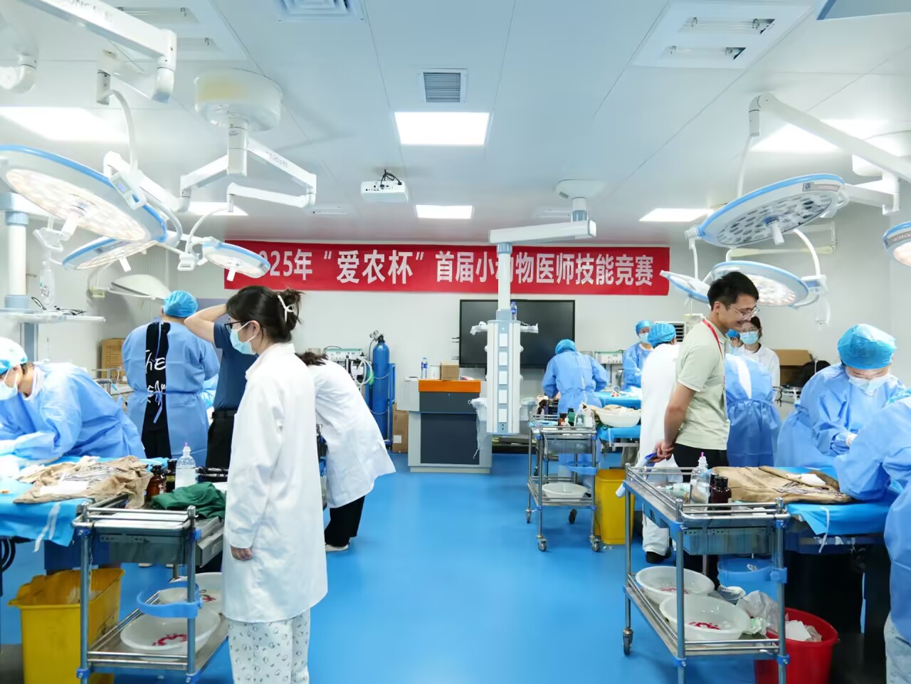 本网讯 6月17日下午,永利23411集团在动医楼218虚拟仿真实验室和114外科手术实验室举行了2025年“爱农杯”首届小动物医师技能竞赛决赛。学院领导班子成员出席,临床兽医学系部分教师担任评委。